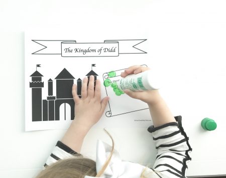 For this activity, you need green dot markers, white crayon, and the Bartholomew and the Oobleck magic art activity printable page for this activity.