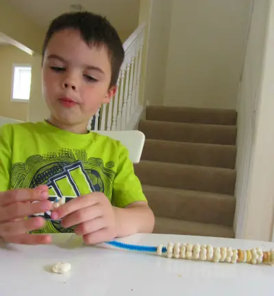 You will need some cereals with holes in their center along with threads or yarns. Teach your students how to pass their cereals through these threads or yarns and wait as they try to do so.