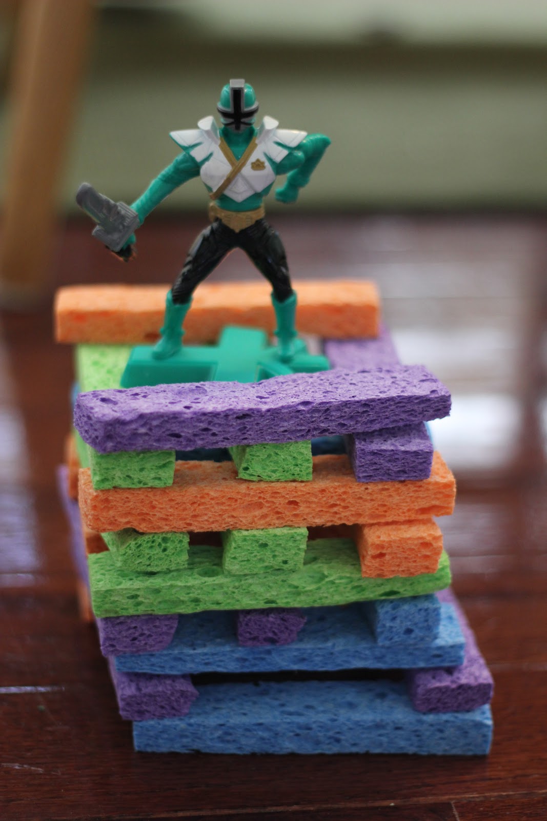 For this activity, cut sponges into thirds or fourths. All you have to do is line them up for the students, and they can sort and stack them as they please.