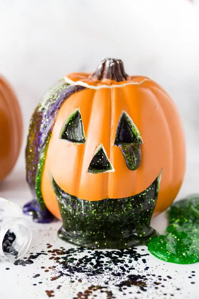 If you’ve carved your pumpkin, you will need to place another container inside it. Or, you could directly fill it up with colored water, a few drops of dishwashing soap, and a few spoons of baking soda.