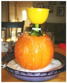 Once set, all you need to do is add a quarter cup of vinegar and let your pumpkin volcano explode!