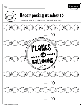You can teach the toddler how to break down the numbers in a variety of ways. You can break 10 into 1+9, 2+8, 3+7, and so on. Moreover, coupling these with a coloring activity will make the child more interested and adept at solving number bonds.