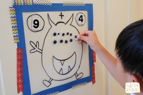 To establish a relation between the empty boxes, the toddler fills in spaces with the right numbers. Therefore, this indoor math activity provides a platform to teach how to solve multiple math problems in a variety of ways.