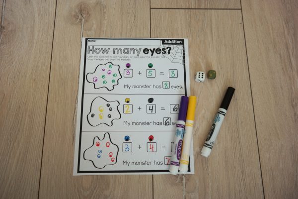 For this activity, prepare a worksheet that has drawings of monsters with different colors of eyes. There should be some space at the bottom of the sheet, and different eyes repeated with a blank space next to them.