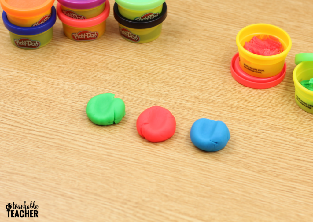 For this activity, using party favor playdough tubs would be a good size for it would have enough for every kid.