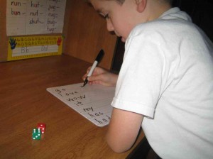Now the real fun begins. You will hand out a die to each of your students and ask them to roll it one by one. Once the die stops rolling, your student will look at the number and then look at the corresponding blank in the sheet. Ask him/her to spell out the word written in that blank.Â