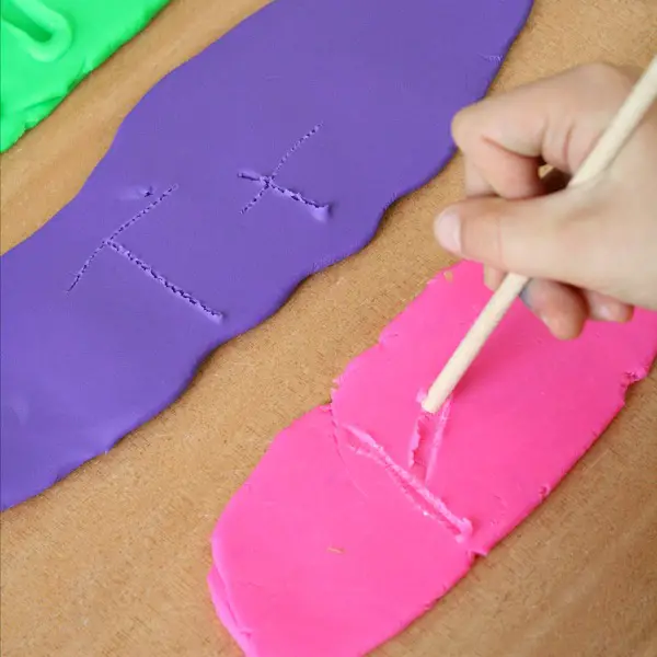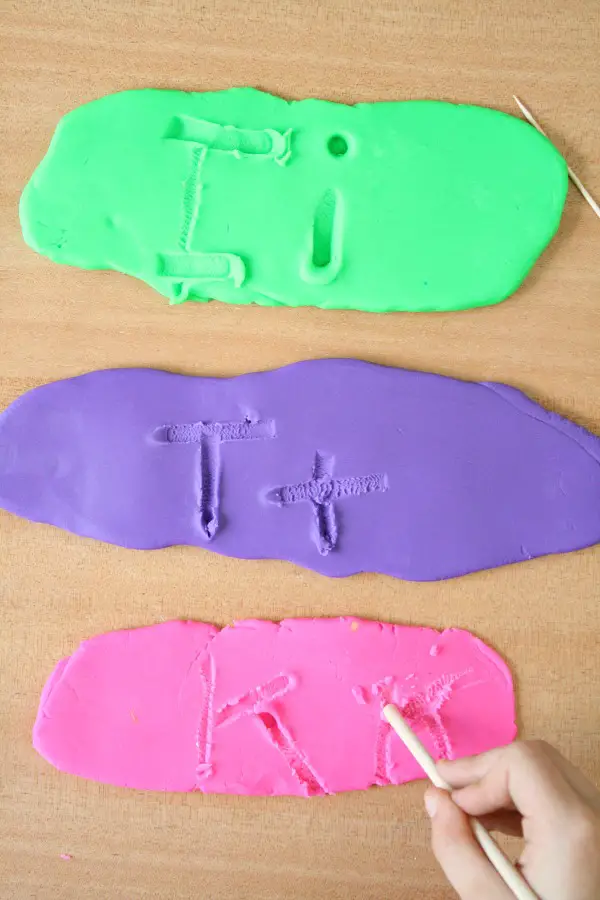 You can hand out play dough to the children and ask them to roll it flat on the table in front of them. Then ask them to carve various letters and even small words on that play dough using a stick. With this, the practice of saying the words out loud should be ensured.