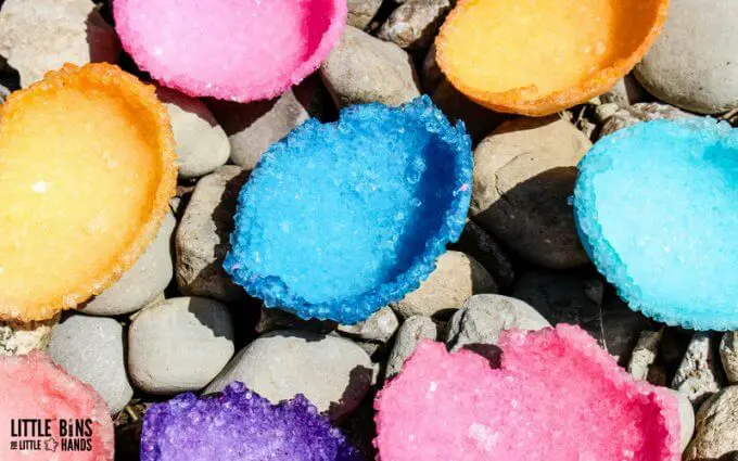 Now, add three tablespoons of borax powder per cup and stir it to dissolve. You should use clear jars so the kids can observe the process. You can wait for a day or two to three days.
