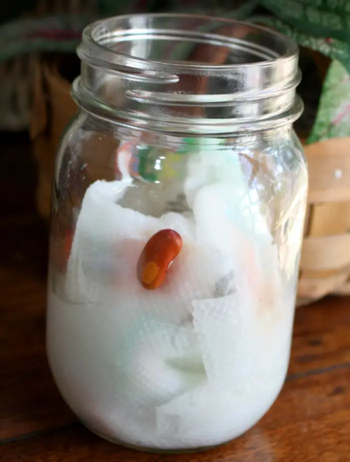 Take some damp paper towels, place them on the cookie sheet, and put the bean seeds on them. Cover the beans with more damp paper towels and place them all in sunlight.