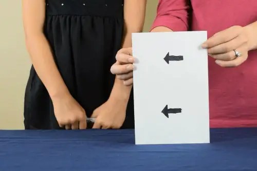 All you will need is a clear water bottle, or you can use a glass filled with water, sticky notes, and a marker. Draw two parallel arrows going in the same direction on the sticky note, or you can use a paper.