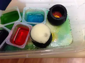 You can add glitter to the mixture as well to make it look more attractive. For learning more about this activity, be sure to visit LittleBinsForLittleHands.com.