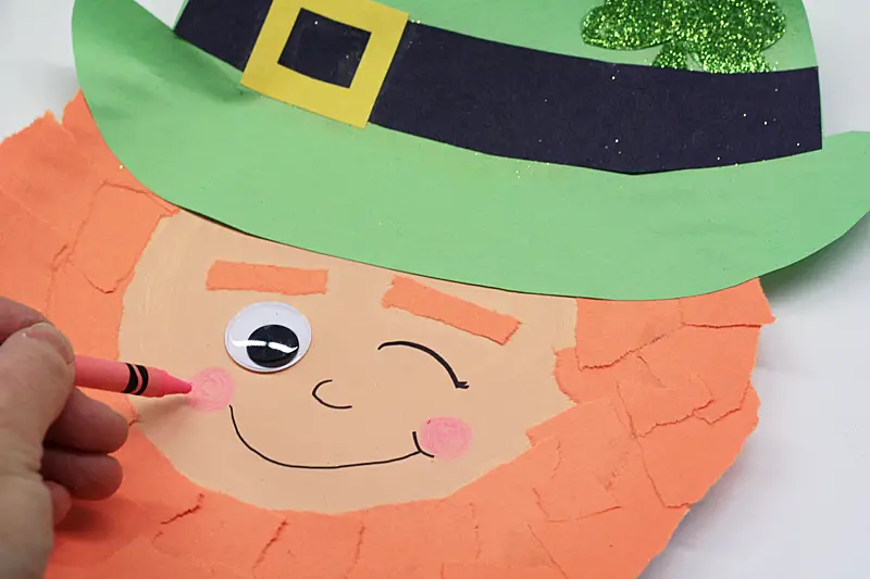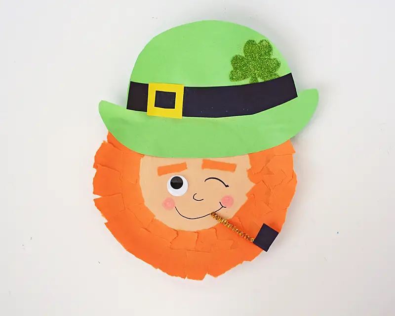 In the end, draw the face of the leprechaun using a marker. You can also use a pair of googly eyes to paste in the place of the eyes, and your paper plate leprechaun will be ready.