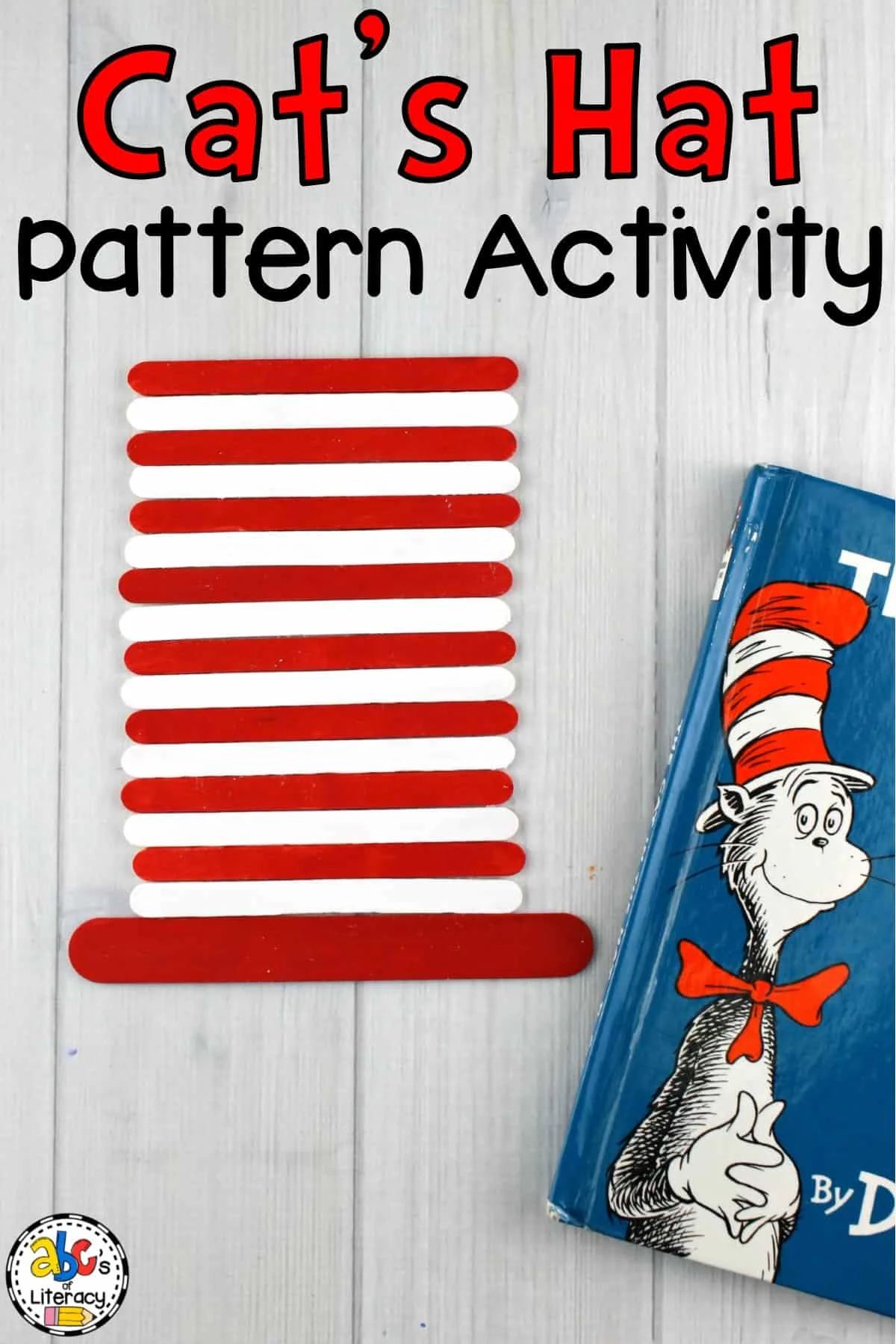 Next, flip the sticks over and paint them white. Allow the paint to dry before using. Next, show children how to arrange the sticks to make the hat by following a set pattern. Start with an easy pattern like ABAB, which is red-white-red-white.
