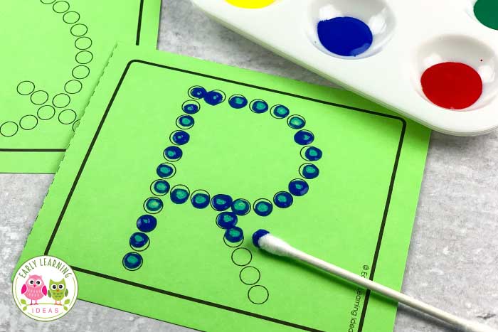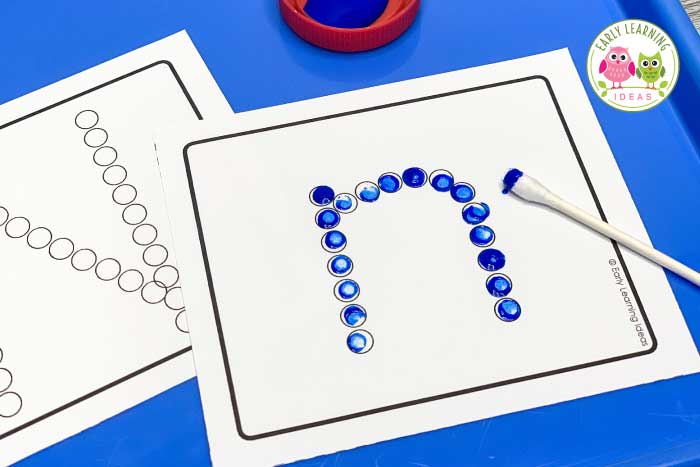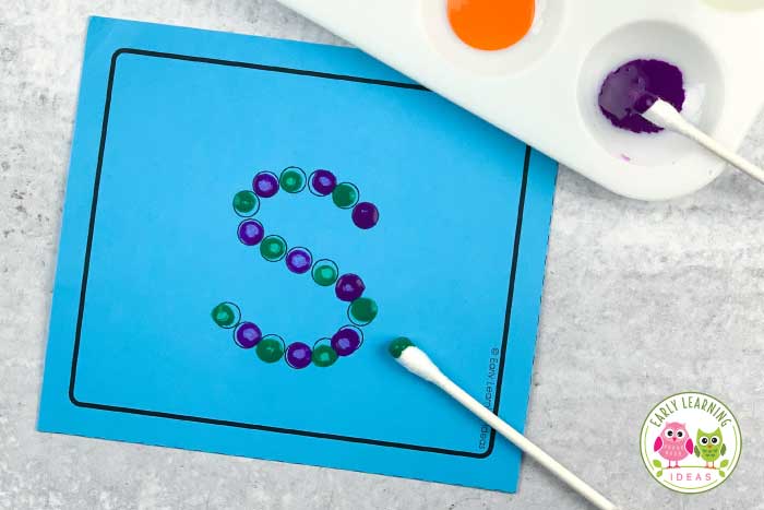 This fun activity from EarlyLearningIdeas.com features an easy-to-use template. The template features a designated starting point so kids know where to begin, followed by small circles that form the letter. Kids can use a cotton swab dipped in paint to dot each circle.