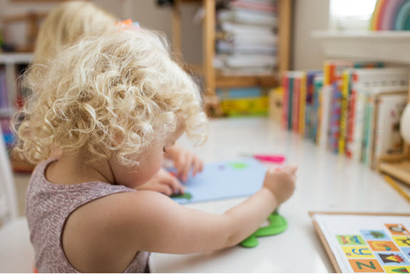 Have your child pick out a full sheet of colored cardstock and get ready to glue! Start by gluing the letter f to the cardstock, then add the leaves. Glue the flower and inner flower to the end of the letter, and voila! Practice saying the word “flower” while emphasizing the first sound to help your child remember the letter f sound. This requires minimal supplies and is quick and easy to do. Check out AllAboutLearningPress.com to get the template and to find out more.
