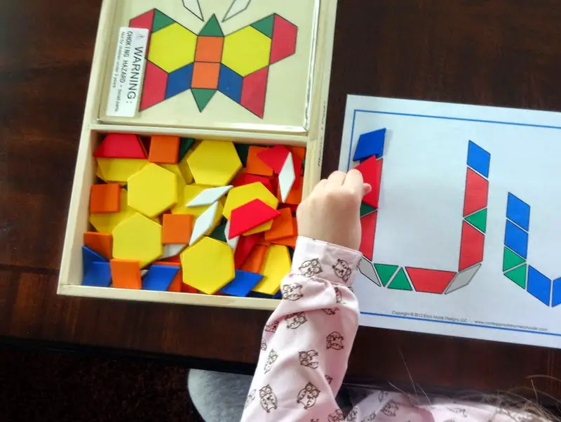 You’ll need wooden pattern blocks and a letter U worksheet to do this activity.