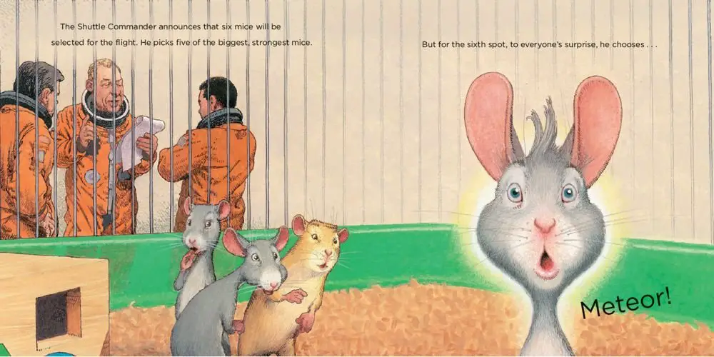 In this story brought to life by C. F. Payne’s stunning illustrations, the astronauts are about to head to space with a few mice aboard the shuttle. Meteor is the smallest mouse of the bunch, but seeing his motivation and hard work, the commander chooses him for one of the six mouse spots. After the liftoff, the astronauts face a disaster when an irreplaceable key gets stuck in a tight spot, but tiny Meteor hurls into action and is able to save the day.