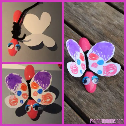 Begin by cutting the bowl or head of one spoon off its handle and gluing it onto the end of another spoon. But take note that you can skip this part and just glue the two spoons together if they’re quite straight anyway. Once the spoons are glued together, wind three pipe cleaners around the handles to make six legs. Then either glue on the googly eyes or have your child draw on the ant eyes with a black marker and that’s it! Easy to follow, this makes a great whole preschool class activity or simple home craft.