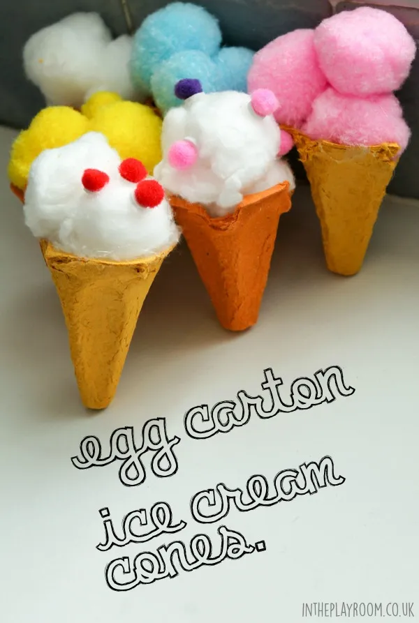 Using recycled materials is always a cost-effective and environment-friendly idea. Take those empty egg cartons and turn them into fun play for your child with this idea from InThePlayroom.co.uk. Cut the cones out from the inner portion of the egg carton. These make excellent cones for pretend play.
