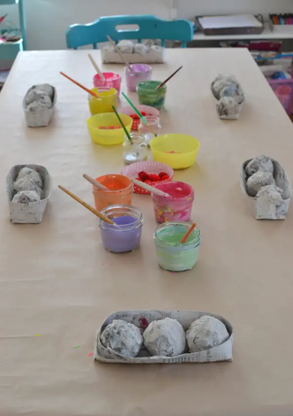 This fun craft from HelloWonderful.co is perfect for ongoing pretend play. You’ll need a few more materials than other crafts but since these can be used in play, it is well worth the effort. Mix plaster of paris and water to a frosting-like consistency. Have your child completely cover the styrofoam balls with this mixture and allow them to dry.