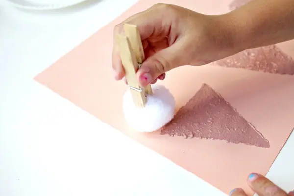 Have your child dip the flat side of the sponge into brown paint and press it onto a piece of white construction paper or cardstock. Stamp this as many times as desired across the paper. Next, use a cotton ball held by a clothespin for the scoops. Kids can dab this onto the paper multiple times to create large scoops. Once their ice cream is the size they desire, add sequins or confetti to top the whole thing off. Thanks to FantasticFunandLearning.com for this hands-on idea.