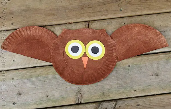 This paper plate owl craft is just too cute and easy to pass up! Since it only involves painting, tracing/drawing basic shapes, and cutting, kids could do this project with little to no help from adults. Cutting circles that form the owl eyes though, can be a bit difficult for younger kids and so require some guidance or advance prep work. However, this is a good opportunity for them to practice cutting curved lines.
