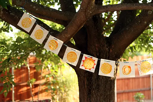 Choose your preferred sun material first: either a cardstock or a paper plate, any will work. Then on your paint palette, pour on a good amount of the colors orange, yellow, and a mix of both. If you’re using cardstock, trace a circle using a bowl, and paint it in with a mix of orange and yellow. Once all covered, it’s time to grab your fork, dip its tip into paint and have a blast creating sun rays around the circle!