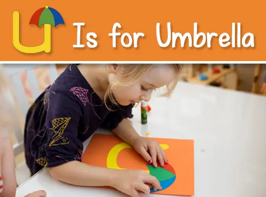 - Cut out the letter U and the umbrella pieces.