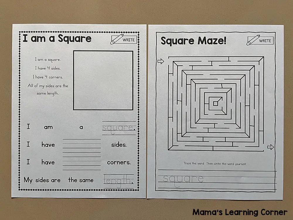 You can purchase the packet of Square Worksheets at Mamas Learning Corner.