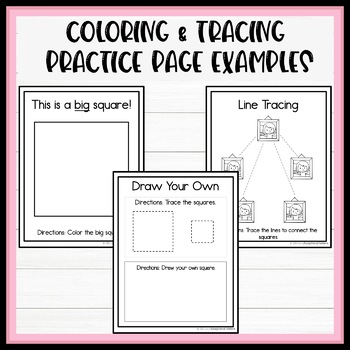 This set of worksheets is designed to help students improve their coloring, tracing, and cutting skills while learning about squares. The level progression in this set allows any student to participate! Beginning-level students will progress from coloring one large shape per page to several small shapes per page.
