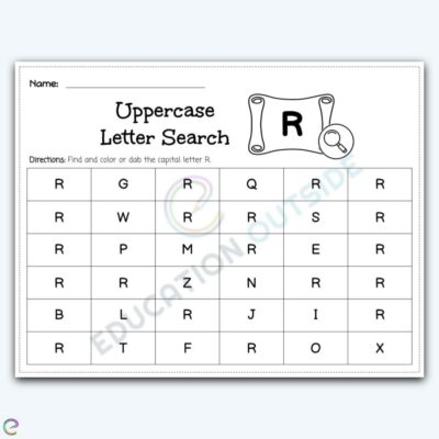 Kids will have fun finding and marking the capital letter R using bingo daubers, do-a-dot markers, or any coloring utensils.