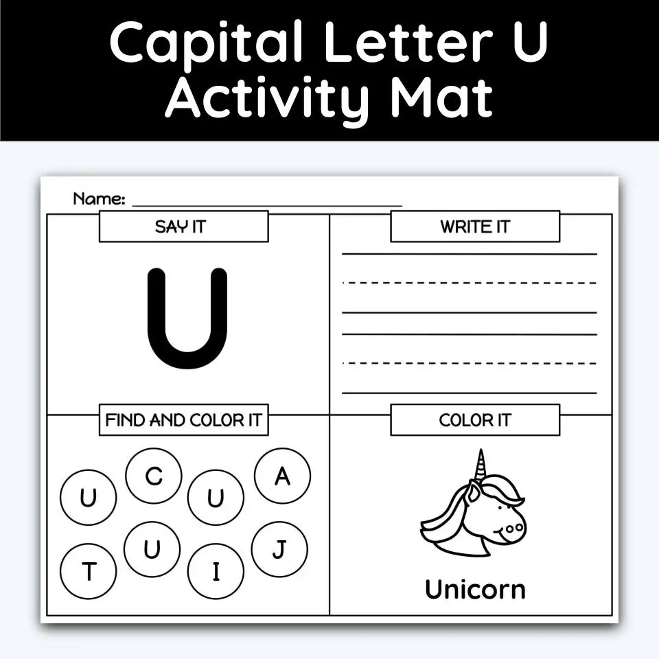 Master the uppercase letter U four ways with this alphabet activity mat!