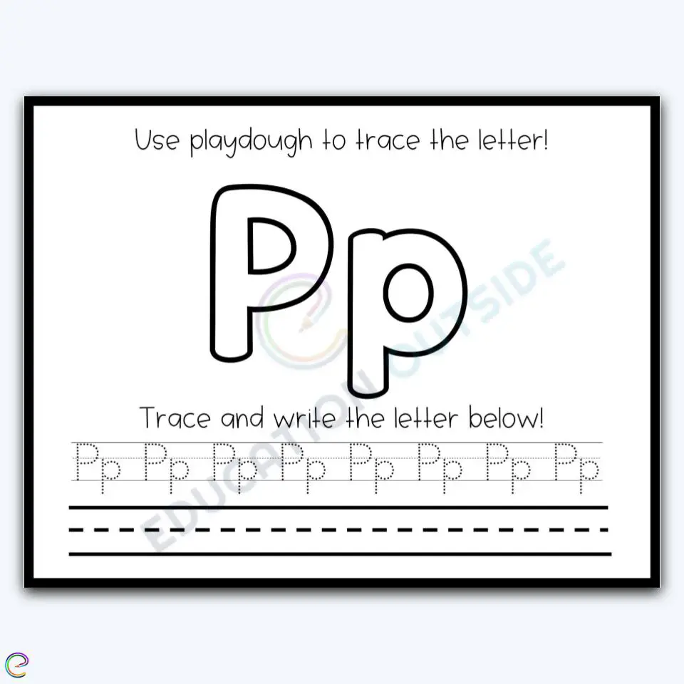 Students will love shaping playdough “snakes” into letters, tracing, and then writing the target letter unguided – all these while strengthening their small muscle groups.