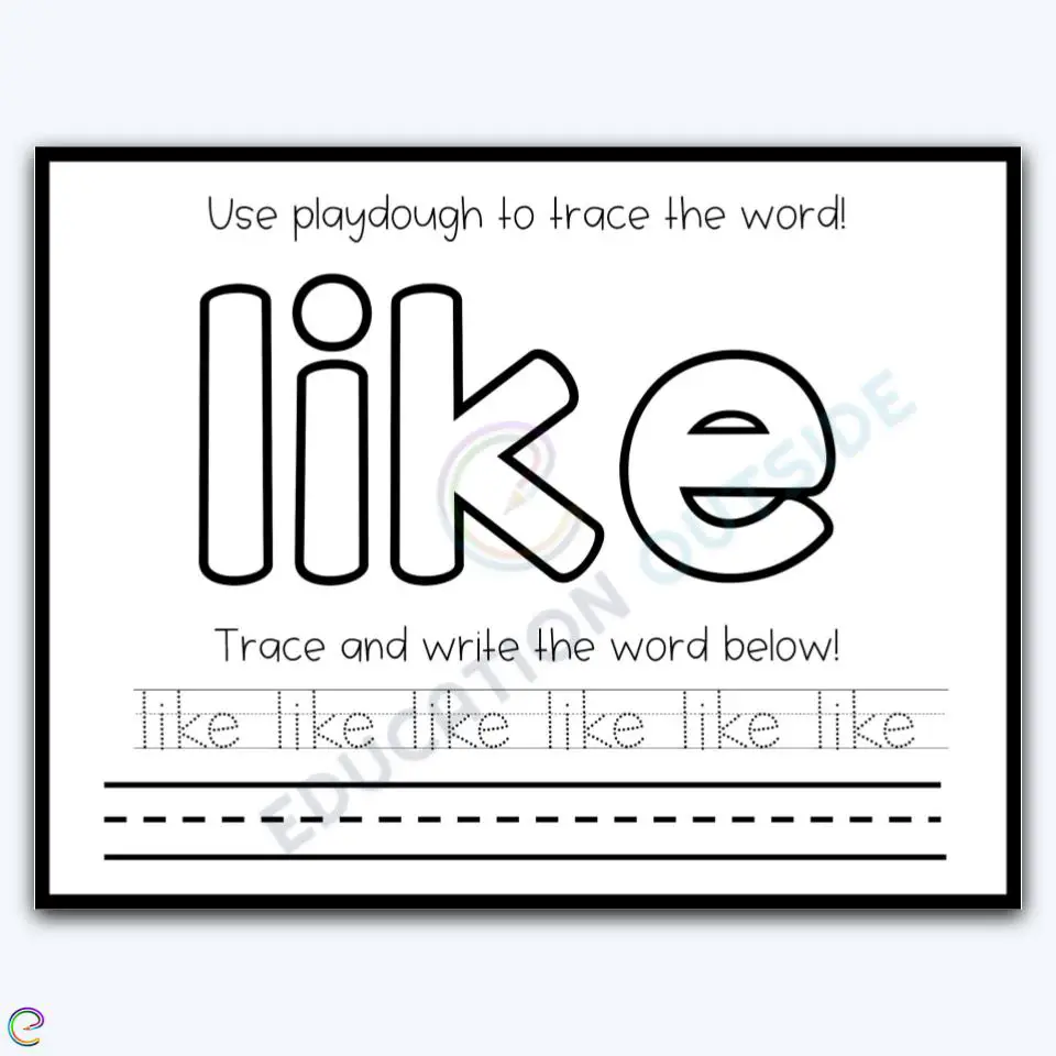 Want the full bundle of the sight word “like”? Get our “like” Sight Word Worksheets Bundle here.