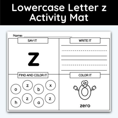 Master the lowercase letter z four ways with this alphabet activity mat!