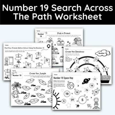 Kids will have a blast practicing identifying the number 19 to create a path and complete each mission. This coloring worksheets pack works on number recognition and is a great way to strengthen kids’ small muscle groups.