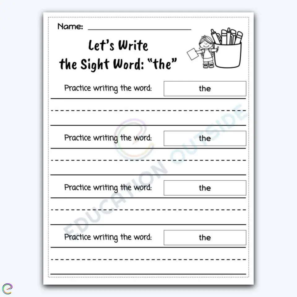 Engage your students in writing high frequency words using this Practice Writing the Word Activity Page dedicated to the sight word “the”.