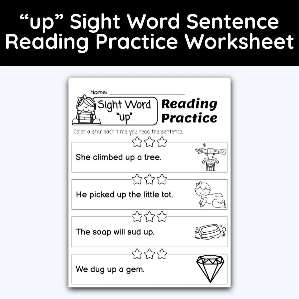 Looking for the full bundle of the sight word “up”? Click here to get our “up” Sight Word Worksheets.