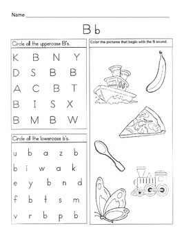 Looking for a short, sweet set of letter b worksheets? This letter b alphabet and phonics set from KellyConnors features 5 differentiated activities to keep your whole group busy. The included activities are penmanship, beginning sound identification, writing worksheet, and uppercase/lowercase identification pages.