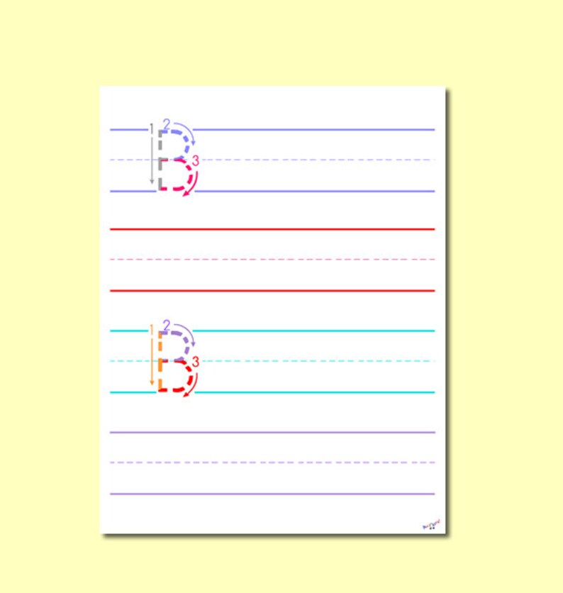 For targeting letter formation, you won’t go wrong with these color-coded tracing sheets from Kidznote. You get an uppercase and a lowercase practice sheet. Each set of lines is color coded to help keep kids on track. This is especially helpful for those with dyslexia, dysgraphia, Down’s syndrome, or other learning disabilities. It is also perfect for introducing letter b formation to young kids. Colored lines guide kids step-by-step to properly form the letter b.