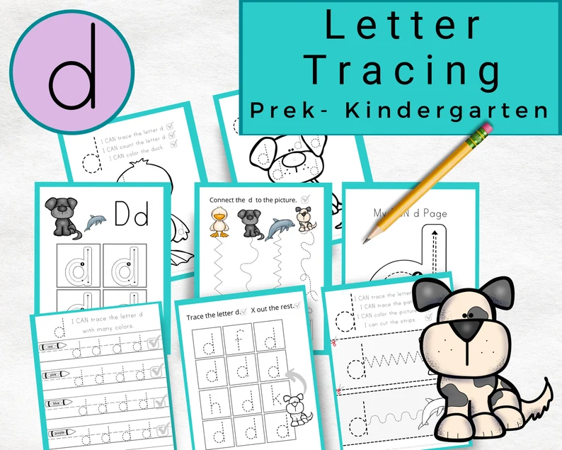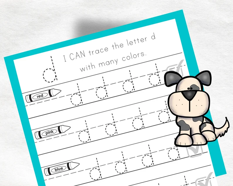 Learning to trace lines to make letters is the cornerstone to writing. DesignsbyBekkiSayler’s letter d tracing worksheets from give kids plenty of ways to practice tracing the letter d. Each page includes a self-assessment checklist so kids can keep track of their progress.