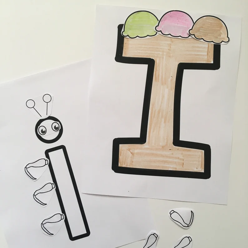 This hands on craft and activity set is great for preschoolers and kindergarteners. It includes 30 pages of letter i fun, including coloring pages, dotting activities, bubble letters, counting, letter tracing and more. The pages have large letters and drawing that are perfect for little hands.