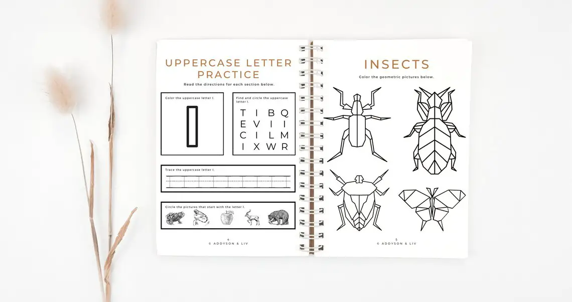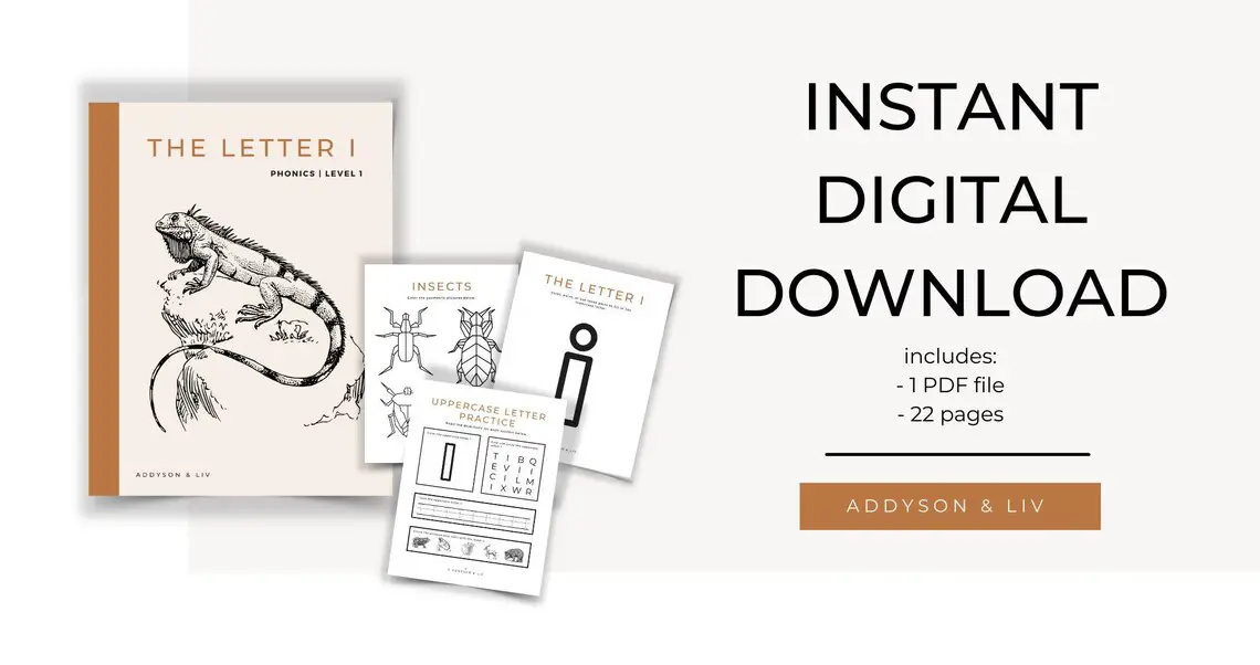 Introduce kids to the letter i with this fun 22-page nature-themed workbook from AddysonandLiv. Easily printable and filled with various ways to practice the letter i including tracing, printing, coloring, sorting, flashcards, and so much more.