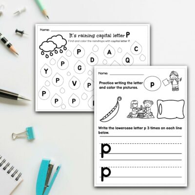 These color-coded sheets from Kidznote include an uppercase and a lowercase sheet and you can print as many as you need. Kids will appreciate how easy these are to follow along with, particularly kids with dyslexia, dysgraphia, Down’s Syndrome, or other learning disabilities. This will help them be more successful in recognizing, writing, and identifying the letter p.