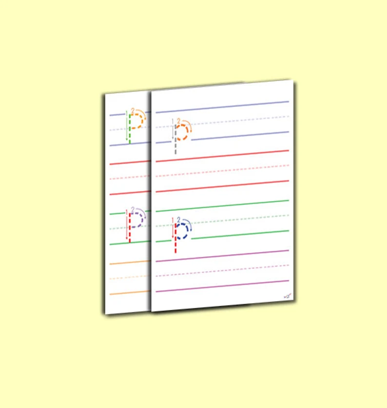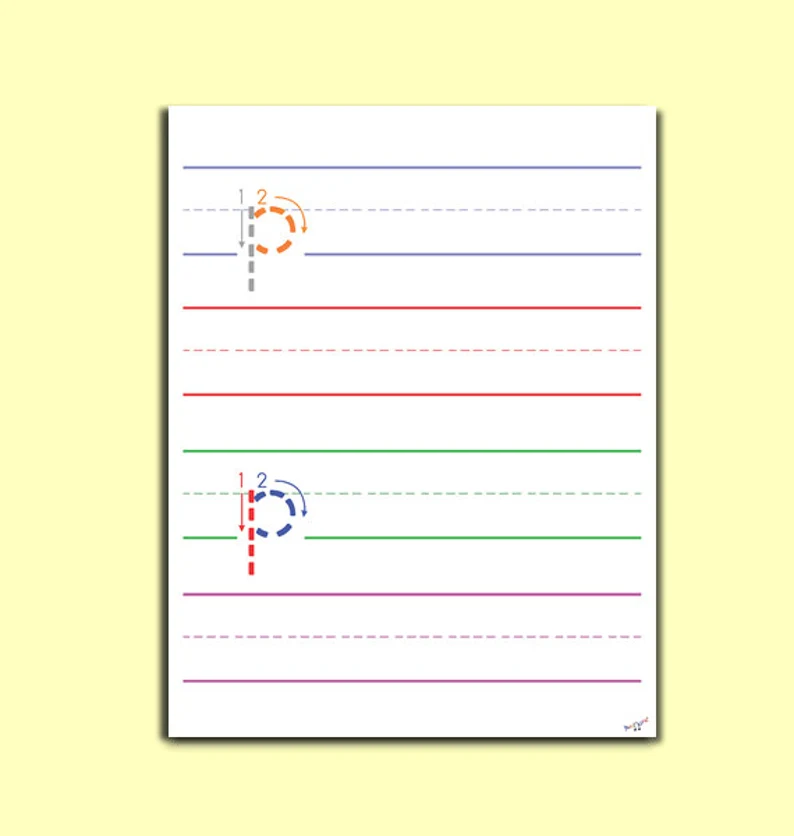 Sometimes kids struggle to keep track of which lines they are using and the order of forming the letters. These great color-coded lines will keep kids focused by providing groups of lines to follow. It also features numbered, colored lines for letter formation to help kids learn to properly write the letter p.