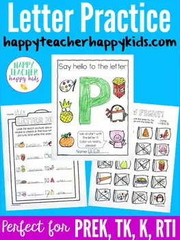 Make learning fun with this letter p set from HappyTeacherHappyKids. This set includes 40+ pages of interactive practice for young kids. Practice with a meet-the-letter-p book, 10 additional practice pages, handwriting booklet, playdough mats, and a hunt-the-room activity you can use for one or multiple students.