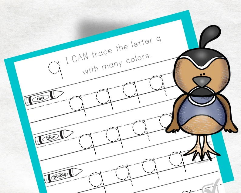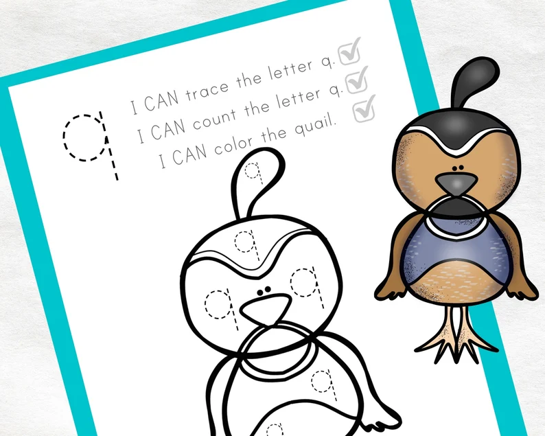 The set includes 8 pages of tracing fun. Kids will see and trace the letter q on every page. A checklist is included on each page so kids can self-check. Every page is engaging and interesting, and gives kids the space to practice the skills they need.