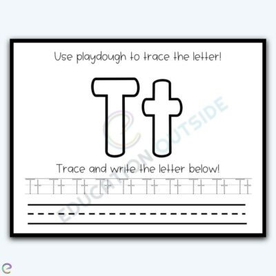 Any time you can engage a child’s motor skills while learning, it is sure to be a hit. Kids learn by doing, feeling, and seeing. EducationOutside’s letter t playdough mats are a great way to practice. This is a single sheet but covers 3 separate activities to keep kids learning. The sheet contains a large upper and lowercase letter t for kids to trace with playdough, a line of tracing both letters, and a line to write the letters independently.