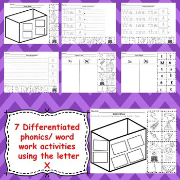 If you need a few different ways to practice, this set will fit the bill. It includes 5 pages of letter x practice, covering 4 different activities. These activities are sentence writing, identifying the beginning sound, two penmanship pages, and upper and lowercase letter identification.