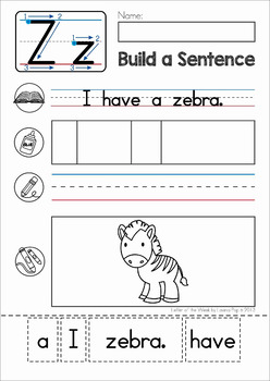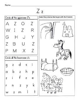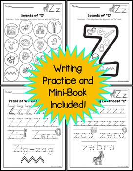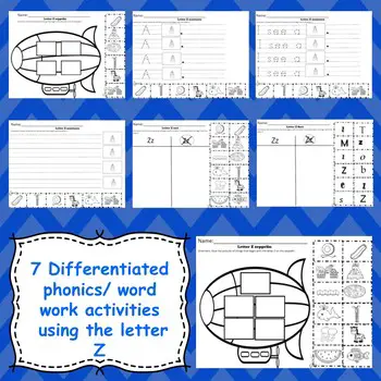 KellyConnors created this letter Z phonics worksheet set for differentiated practice for students. You get 5 pages encompassing 4 different activities that help kids learn and practice writing, identifying, beginning sound, and writing sentences using the letter z.